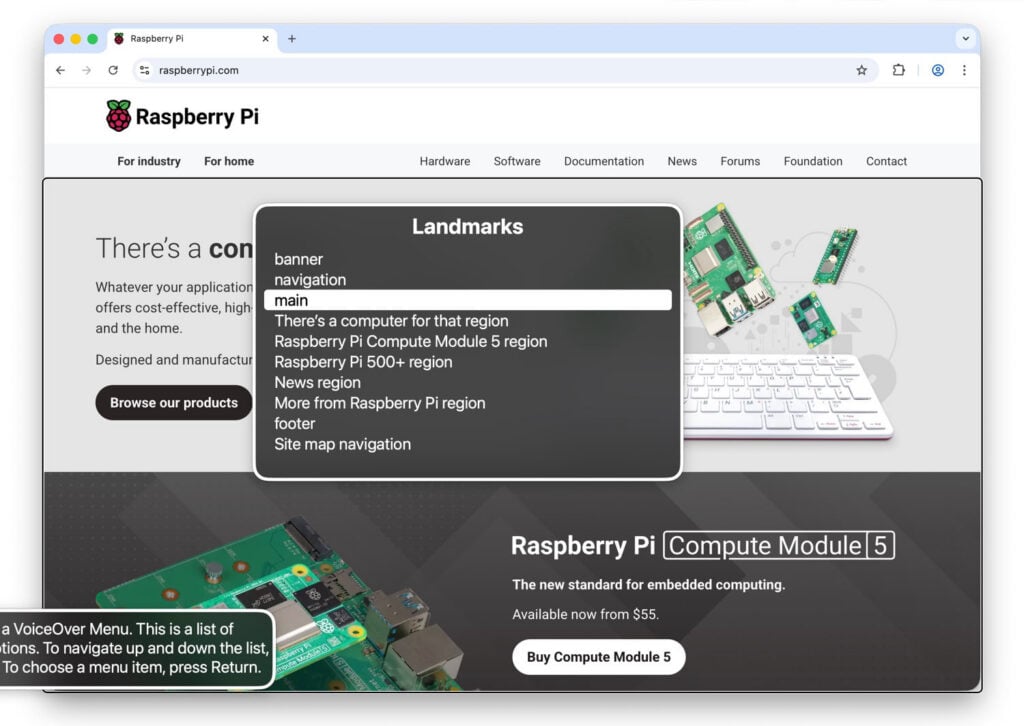 We’re committed to making raspberrypi.com work well for everyone. Recently, we’ve been endeavouring to make the site more accessible to people using screen readers, such as JAWS and NVDA on Windows or VoiceOver on macOS and iOS.