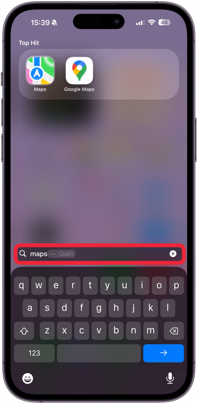 - Navigate to a place on your iPhone where you can see the Maps app icon, like the results of a Spotlight Search.