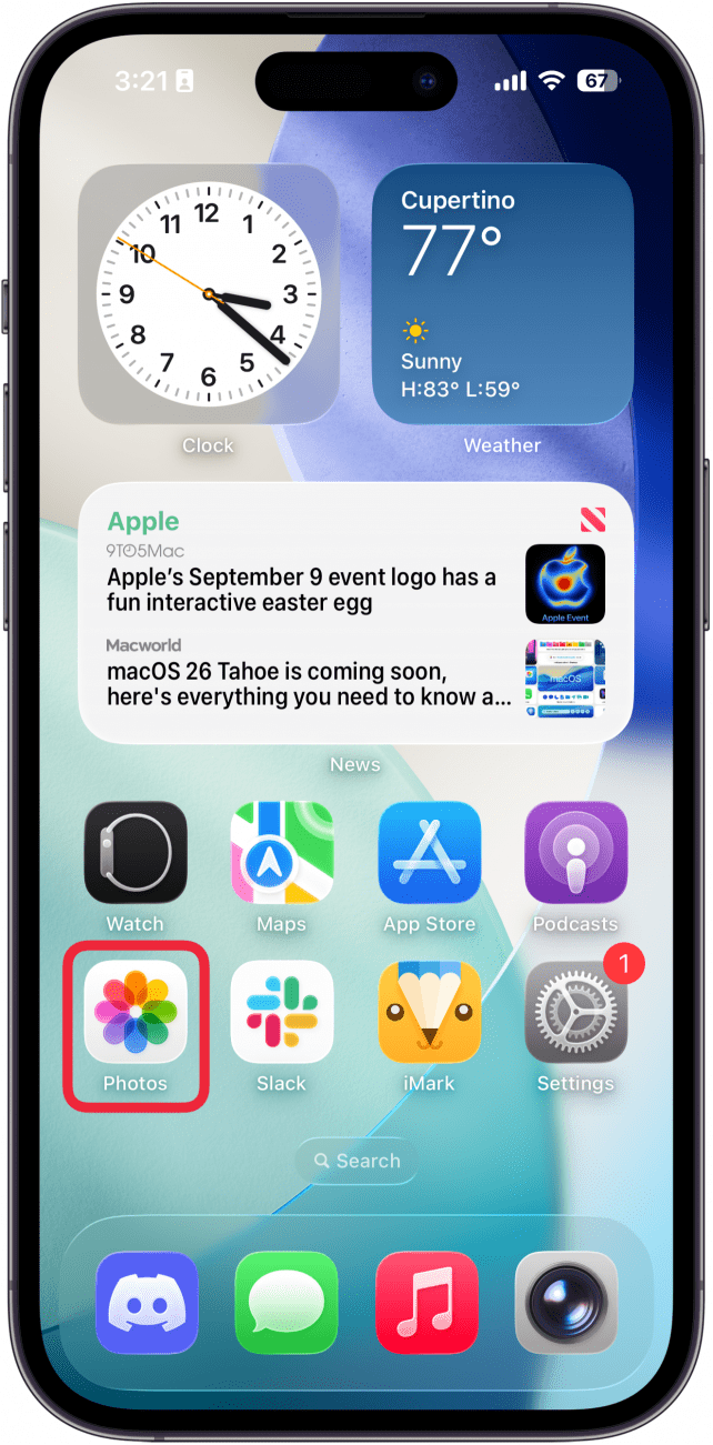 - Open the Photos app.