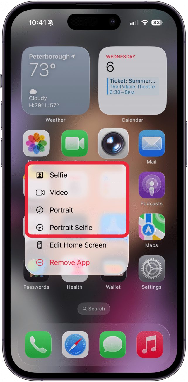 Did you know you can open your Camera app to a specific mode right from your Home Screen? No need to swipe to find the right one. All you have to do is long press on your Camera icon and then select either Selfie, Video, Portrait, or Portrait Selfie.