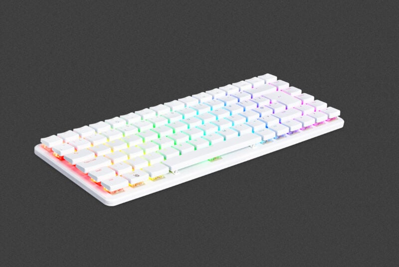 The most obvious physical difference between Raspberry Pi 500+ and 500 is the keyboard. Each key rests on a Gateron KS-33 Blue switch with a custom RAL 7001 Silver Grey stem, giving a satisfying sound and feel when pressed. Individually addressable RGB LEDs provide programmable backlighting, and with an RP2040 running QMK as the controller, a Doom port to the keyboard itself is surely just a matter of time. Each custom-designed low-profile keycap is spray painted and then laser etched to allow the backlight to shine through the legend.